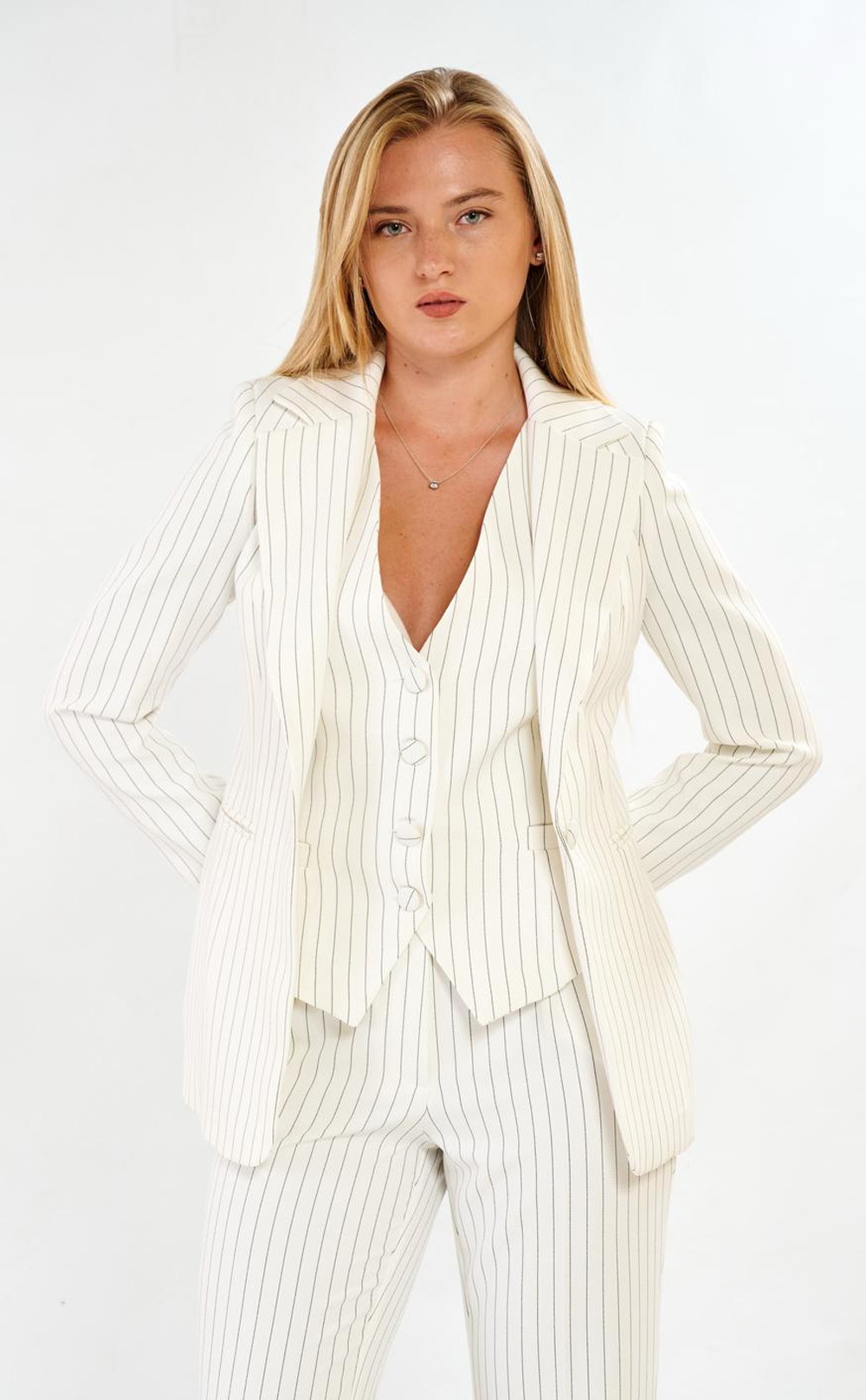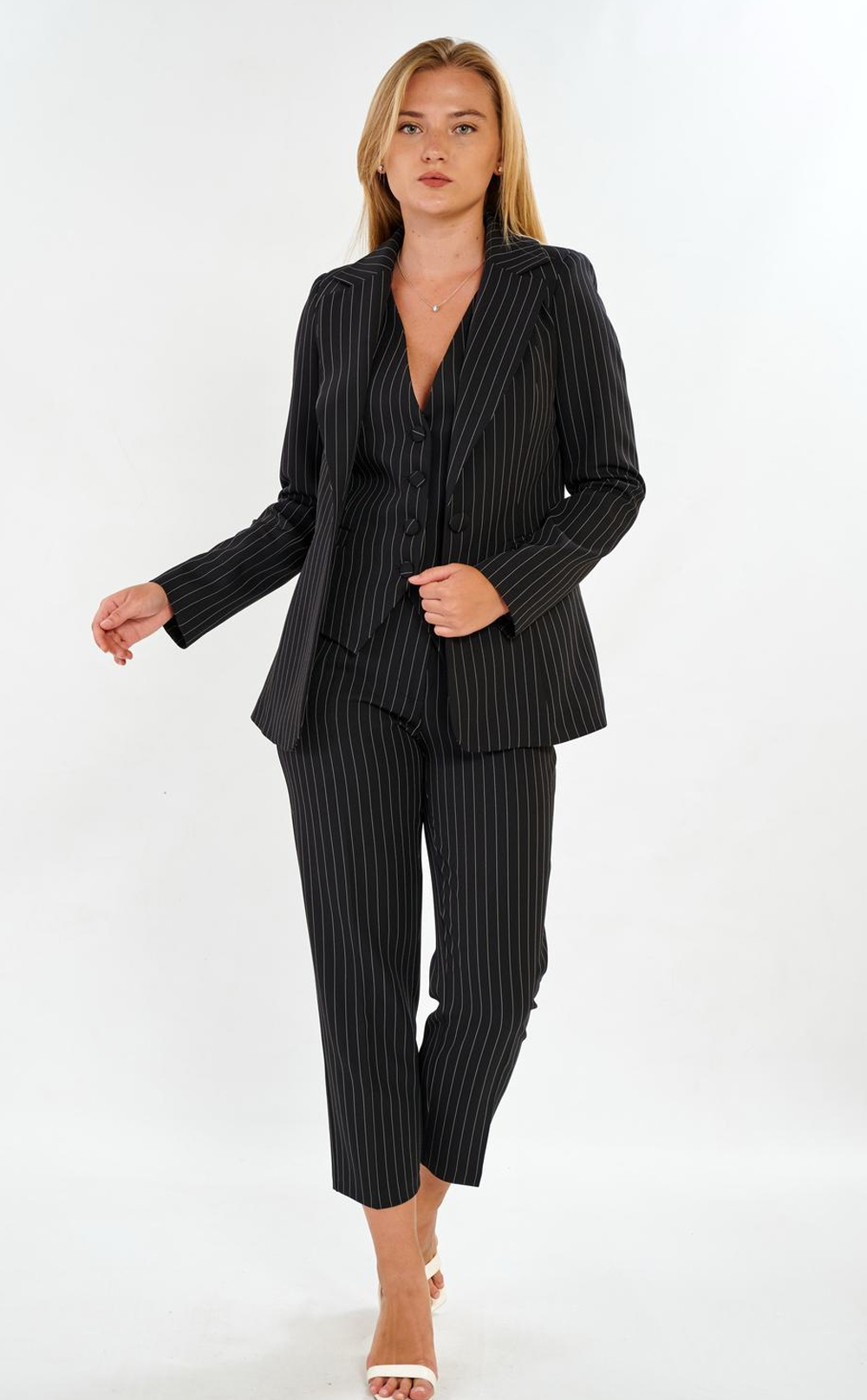 Çizgi Detaylı 3’lü Kadın Blazer Takım 38-46 Beden 1 Seri